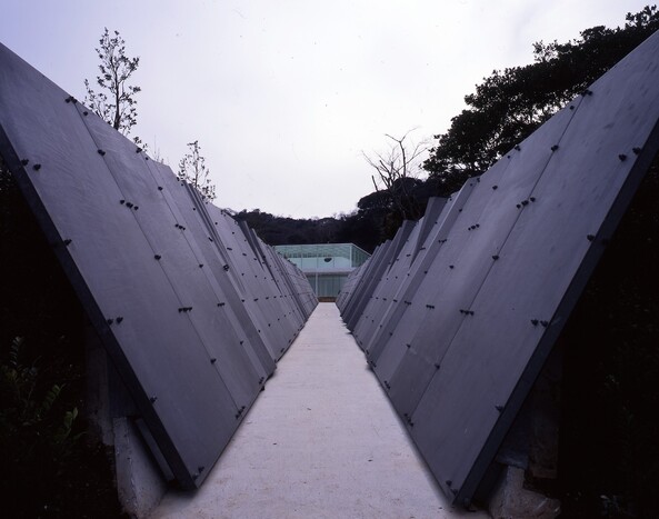 高さ3m、全長46mの鉄の谷《Valleys》(1989年)は、もともと二列の谷として並べて展示されましたが、横須賀美術館では一本の直列の谷として2006年に屋外に設置しました。鑑賞者は谷間を歩くことで自然の中に設置した作品のスケールを直接感じることができるようになりました。