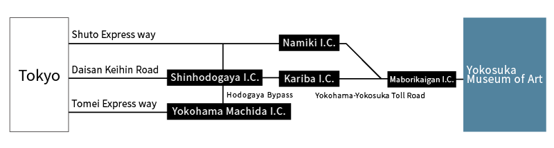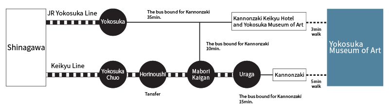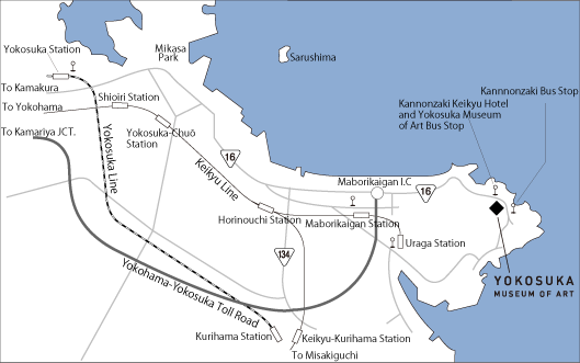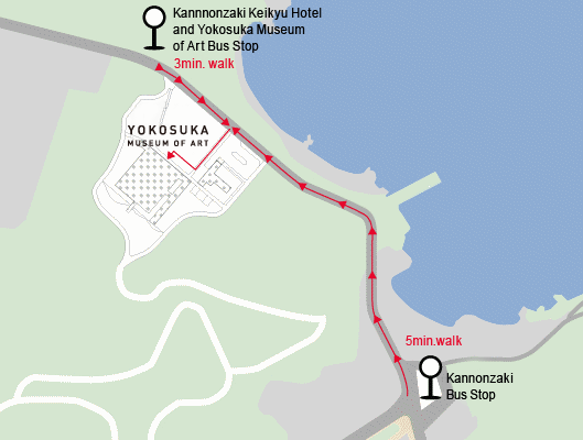 ■From Maborikaigan Station on the Keikyu Line, or Yokosuka Station on the JR Line: Take the Keikyu Bus bound for Kannonzaki and get off at Kannonzaki Keikyu Hotel and Yokosuka Museum of Art Bus Stop; 3 min. on foot.
