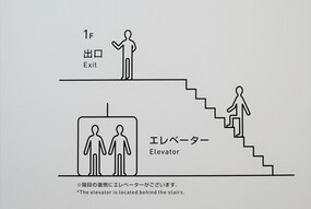 単に場所を示すだけではなく、階段をのぼる人や本を読む人をかたどるなどそこでの行動を表し、少しだけ人格があるようなあたたかみのあるものとなっています。