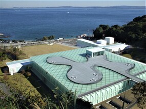 美術館の敷地は、後ろ三方を森に囲まれ、北東が海に面しています。東京湾の眺望がすばらしく、「地形を利用して景観と建物とを一体化させたい」というのが、当初からのコンセプトでした。海側から見た時に背後の森への視線が抜けるよう、また、塩害対策からも、ボリュームの半分を地下に埋めた低層の建物ができあがりました。敷地の海側は、なだらかな斜面でそのまま海につながるようにし、地上に出ている建物部分は森に隠れるように建っています。また、山側から下りてきた散策者は、地続きで屋上広場へと誘われ、眺望を楽しんだ後、建物の中に自然に足が向くようなアプローチとなっています。
